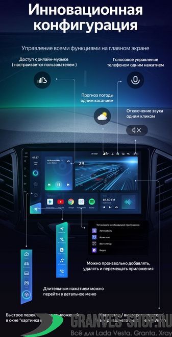 - Поддерживает штатные клавиши управления на рулевом колесе.