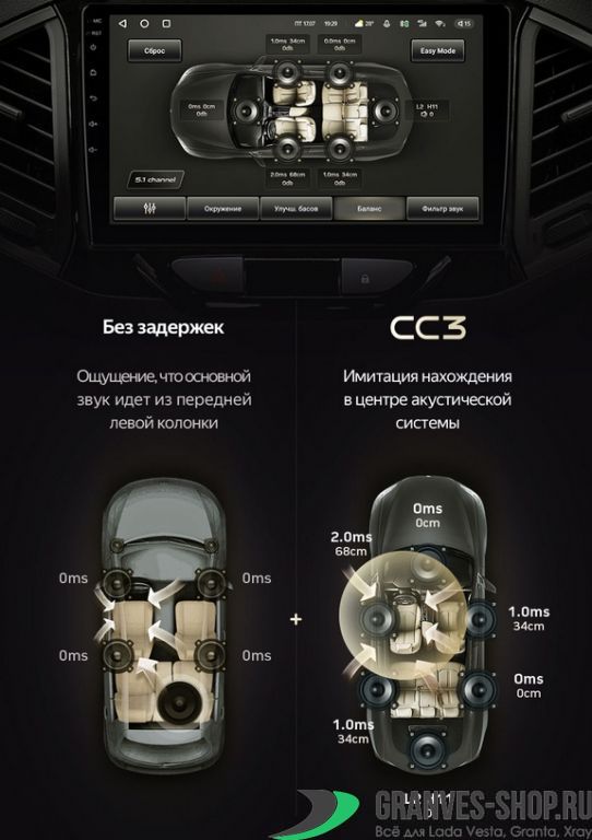 В CC3 вы сможете настроить время воспроизведения каждой из 4-х колонок, задержать или ускорить его по своему желанию. Таким образом Вы можете создать эффект присутствия в концертном зале и наслаждаться живым звуком прямо у себя в автомобиле.