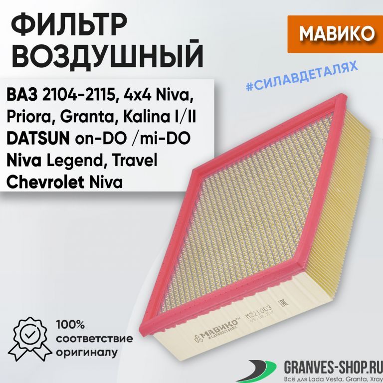 Воздушный фильтр для Лада Гранта, Калина, Приора, Нива, Датсун, МАВИКОВоздушный фильтр МАВИКО для Лада Гранта, Калина, Приора, Нива, Датсун