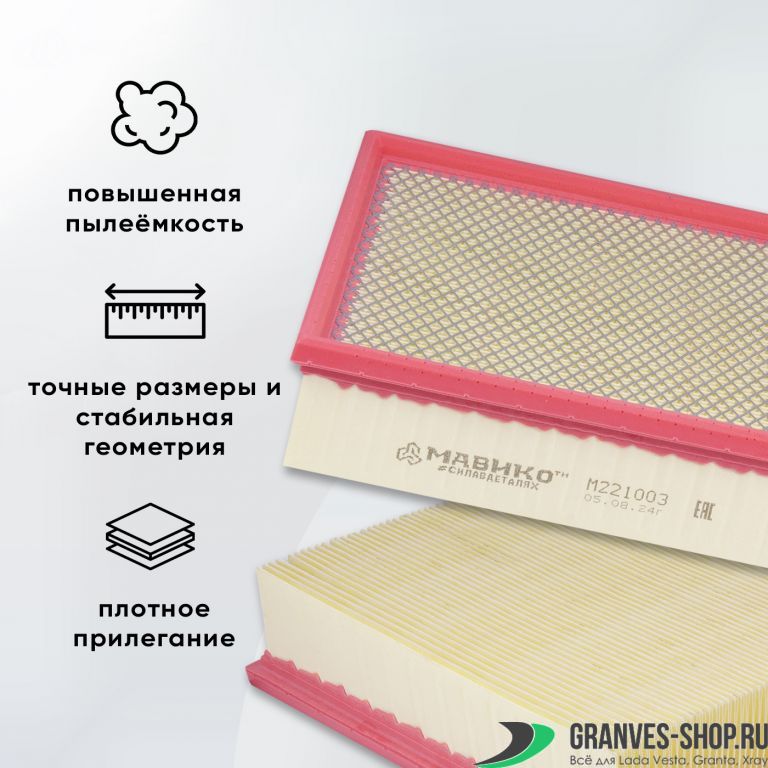 Обеспечьте надежную защиту двигателя вашего автомобиля с помощью воздушного фильтра от производителя МАВИКО. Этот фильтр идеально подходит для моделей Лада Гранта, Калина, Приора, Нива и Датсун, обеспечивая оптимальную производительность и долговечность.